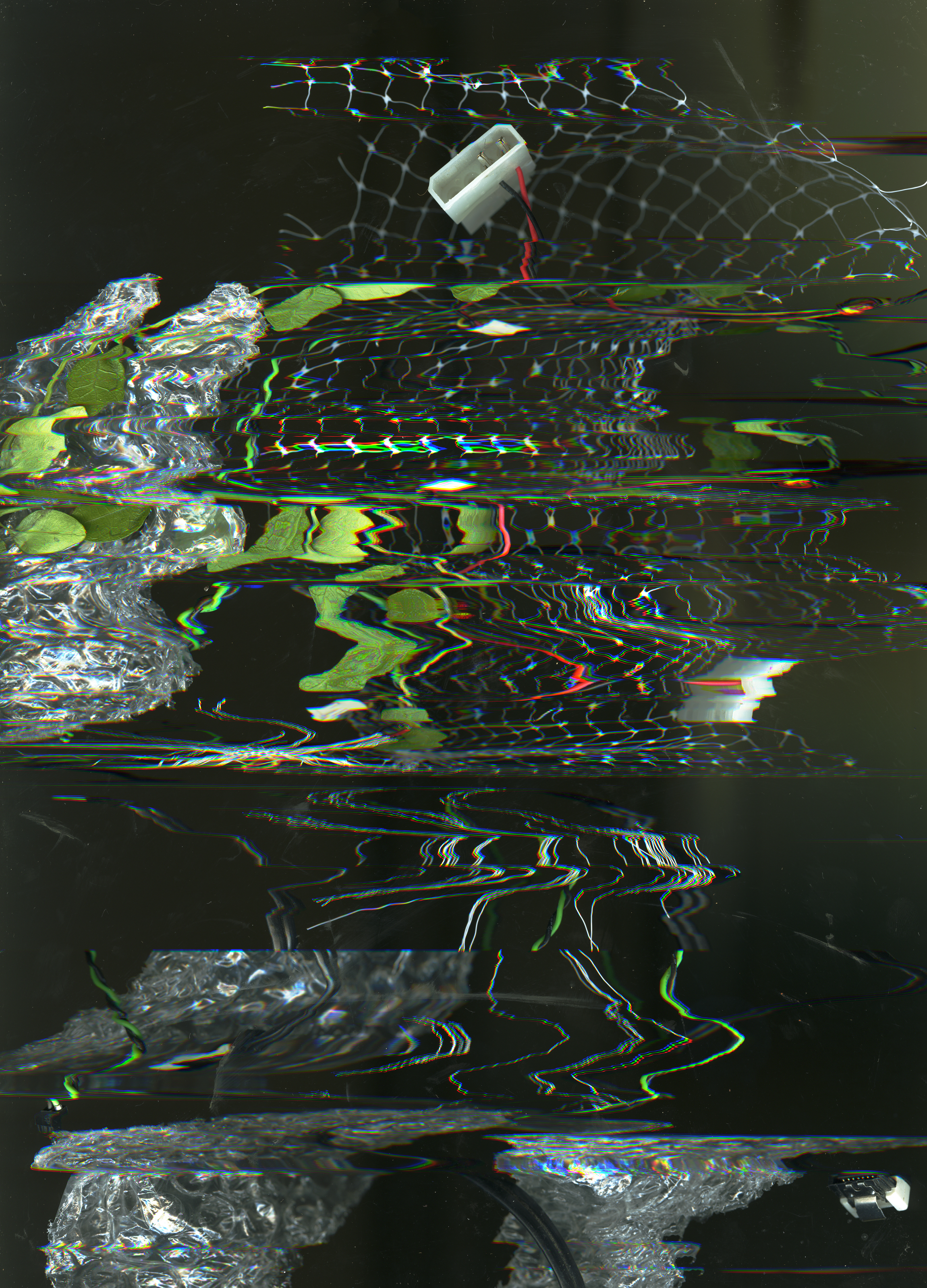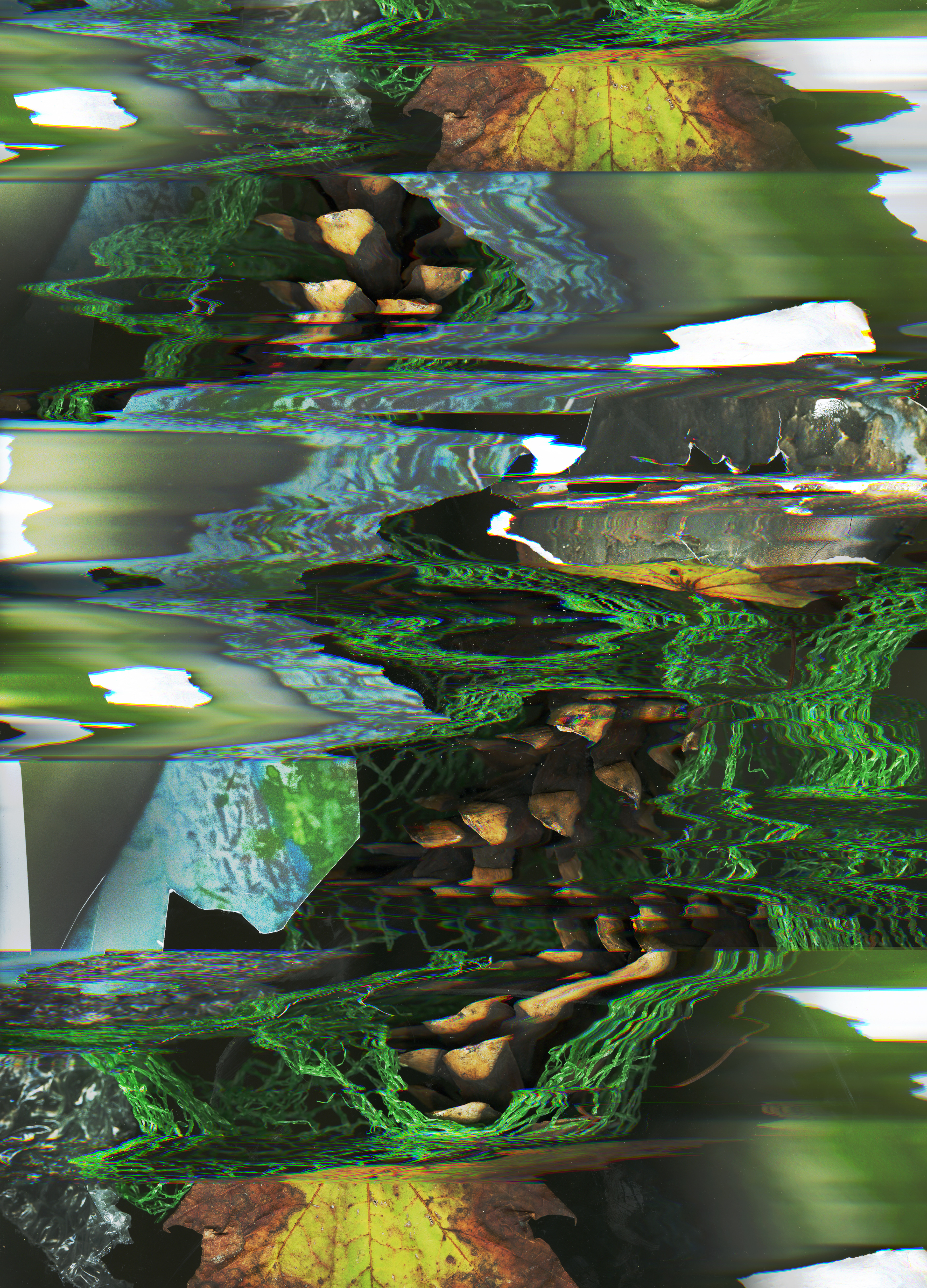 Scanned Compositions of natural and man made objects/textures. A visual commentary reminding the viewer of the pollution of nature.